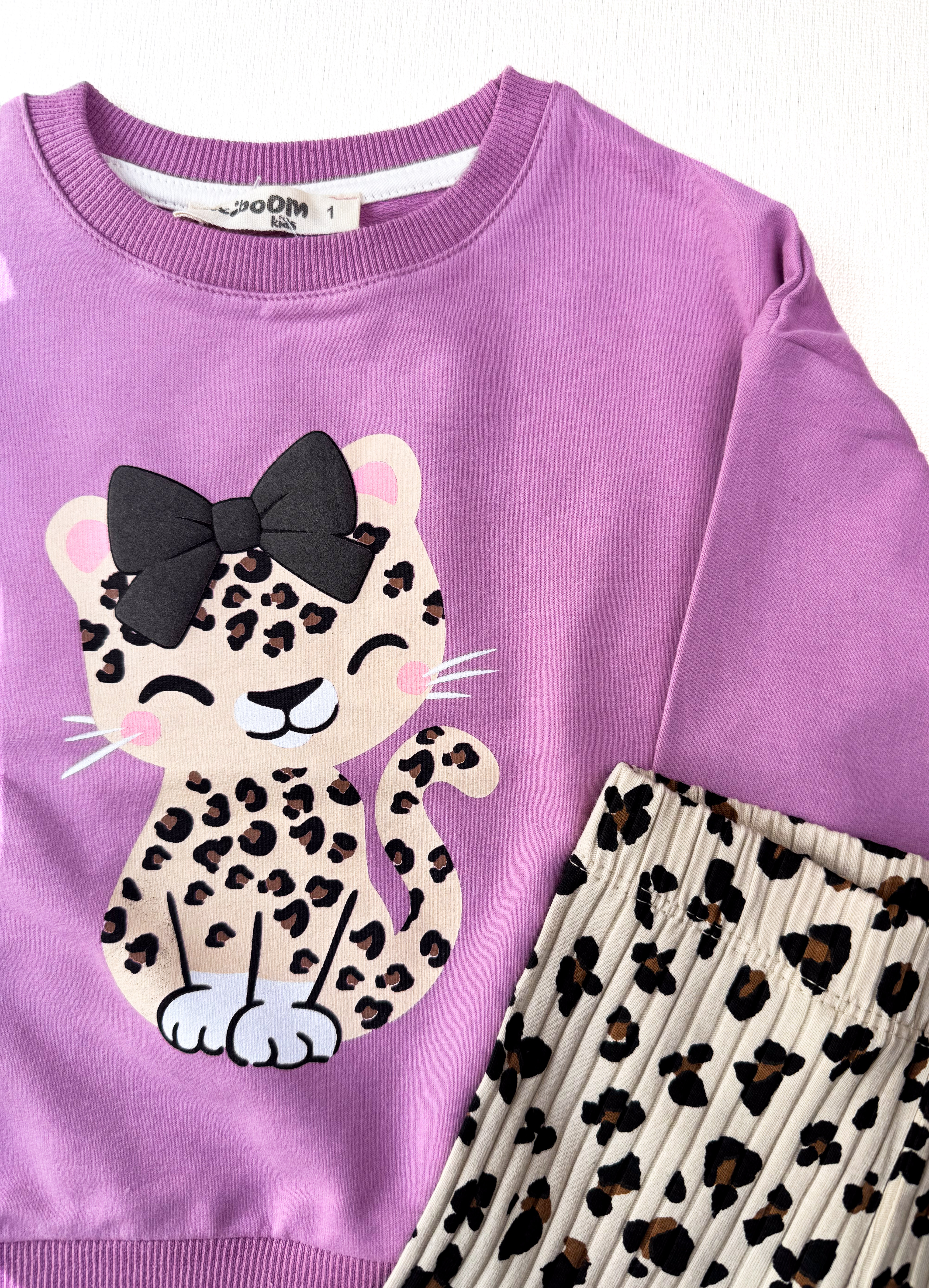 ست بلوز و لگ بچگانهی جذاب «Sweet Leopard» برای لبخند و راحتی هر دختر کوچولویی طراحی شده است. این ست شامل یک بلوز کرم نرم با طرح پلنگی بامزه و پاپیون، بههمراه لگ طرح پلنگی است. این ست بچگانه از پنبه باکیفیت بالا ساخته شده که برای پوست لطیف کودکان مناسب است و در تمام طول روز – چه در خانه، چه در مهد کودک یا هنگام پیادهروی – آرامش و راحتی را فراهم میکند.
