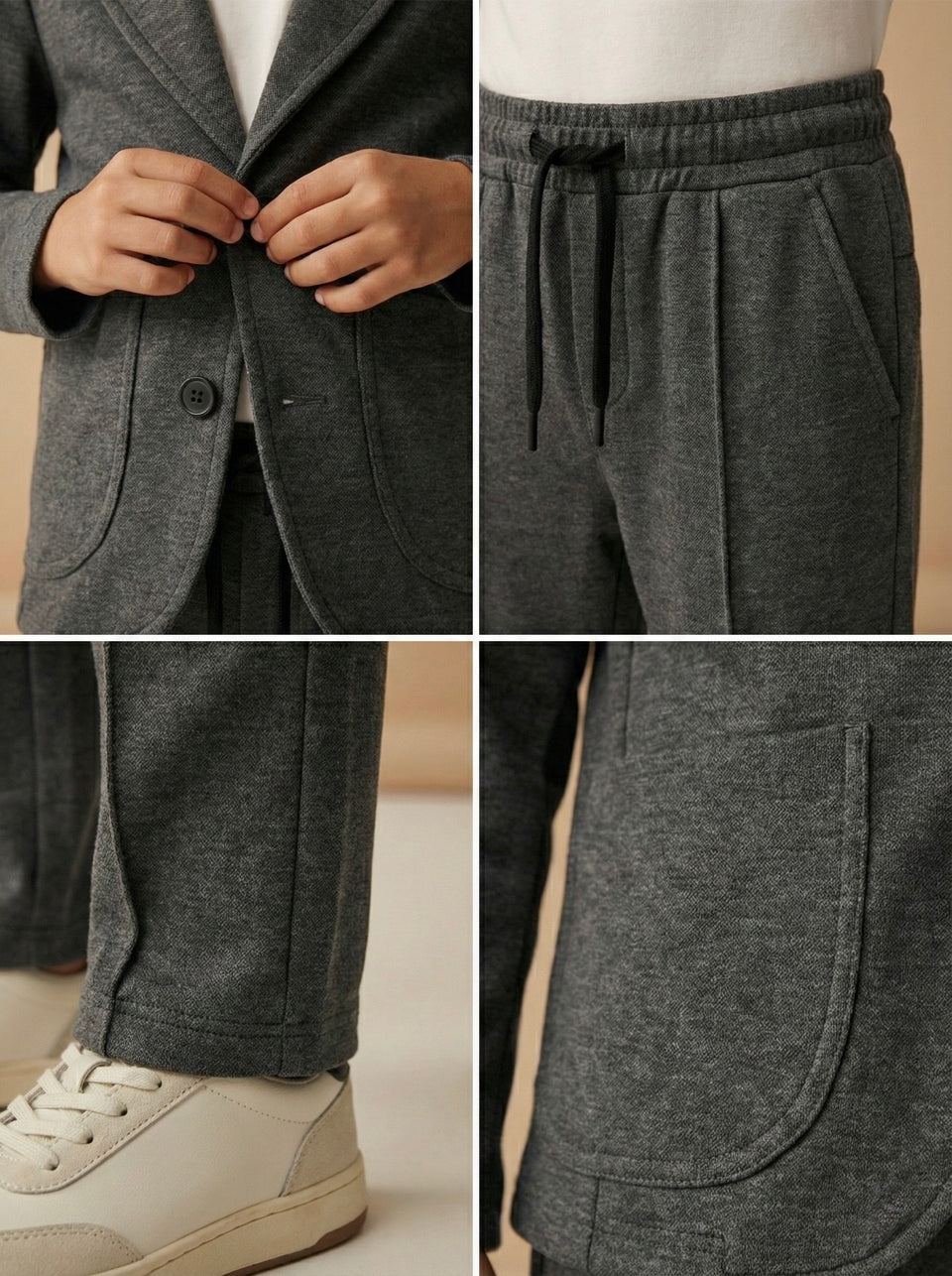 این ست لباس پسرانه که برای مناسبتها و رویدادهای خاص در رده سنی ۹ تا ۱۵ سال طراحی شده، یک مدل شیک سهتکه است که به لطف پارچه دارای لایکرا، راحتی بالایی را فراهم میکند. این ست شامل شلوار، تیشرت و کت بوده و با برش مدرن و ساختار منعطف خود، امکان حرکت راحت را در طول روز فراهم میسازد.