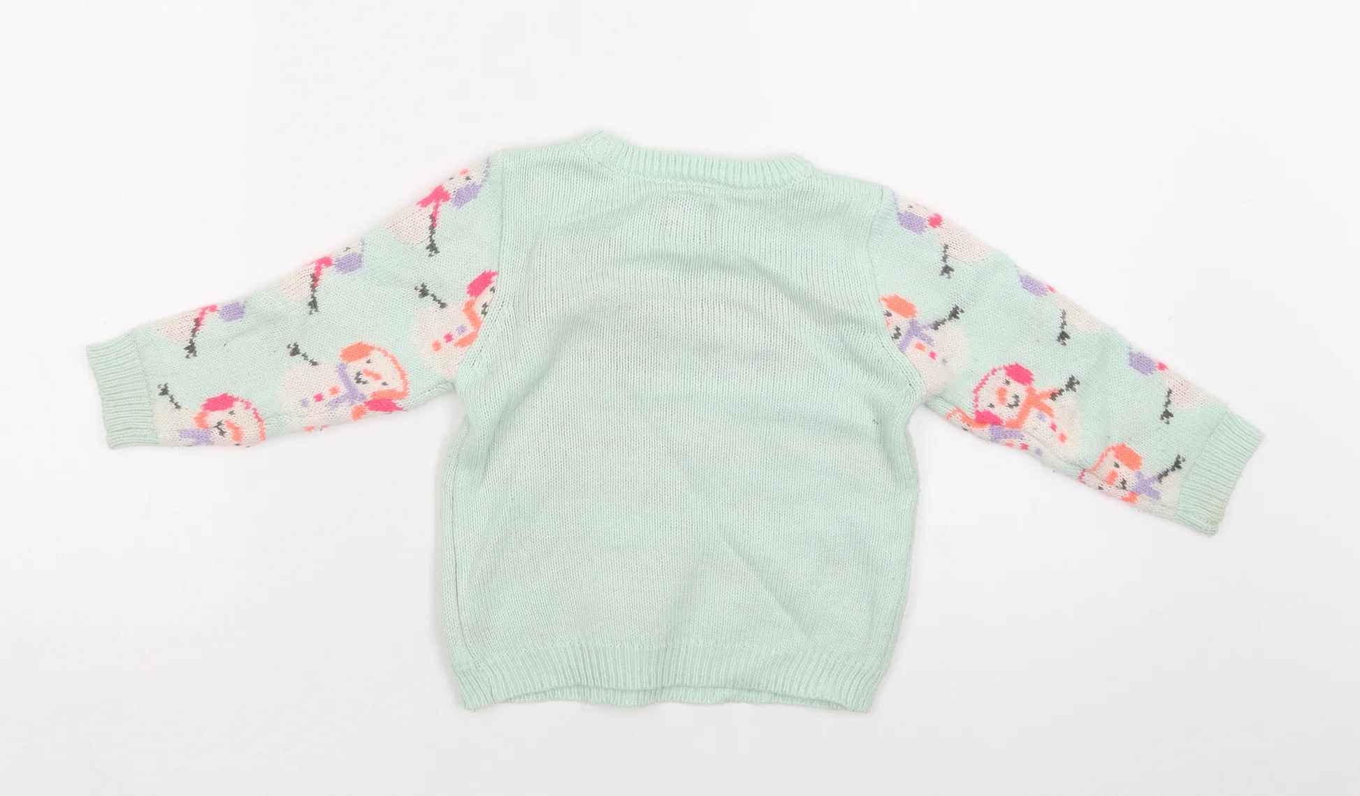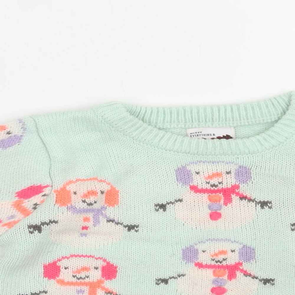 پلیور بافت دخترانه George Baby Green Acrylic Pullover Jumper Snowman